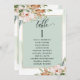 Aidez vos invités à trouver leur table avec cette élégante carte moderne de plan de salon avec les noms des invités. Cartes recto-verso pour que les clients puissent chercher leur nom à l'avant ou à l'arrière. Utilisez des clips ou un trou de poinçonnage pour accrocher les affichages ou ajoutez-les au support/aux images de table. Design avec cadre vert sage élégant avec de beaux bouquets d'aquarelle en rose poussiéreux, terracotta, rouille, vert et un soupçon de bleu et délicat teintes d'aquarelle vert sauge cascadant derrière le cadre. Détails de calligraphie manuscrite moderne. Une partie de notre collection "Earth Blooms in Sage Green and Terracotta" avec une variété de produits de coordination disponibles, y compris les cartes de numéro de table et les menus.