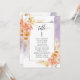 Aidez vos invités à trouver leur table avec cette élégante carte moderne de plan de sièges avec des noms de invités avec la pêche exquise et crème fleurie et lavande teinte d'aquarelle violet. Cartes recto verso pour que les clients puissent regarder les deux, avant ou arrière pour voir leurs noms dans des affichages suspendus. Libérez de l'espace tout autour en vous donnant la liberté d'utiliser des clips ou un trou de perforation pour accrocher des écrans, ou d'utiliser le support/cadre de table. Cadre aux délicats détails floraux dans un beau mélange de teintes pêche, orange, rose vif, rose et champagne crème. Détails de calligraphie manuscrite moderne. Plusieurs options de couleur. Ayez tous les numéros de table dans la même couleur ou mélangez les couleurs selon le thème de couleur de votre événement. Une partie de notre collection "Peach Floral Delight with Lavender Purple" avec une variété de produits de coordination disponibles, y compris les cartes de numéro de table et les menus. Visitez la collection entière à l'adresse suivante : https://www.zazzle.com/collections/peach_delight_floral_and_lavender_purple-119272840408758311