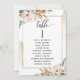 Aidez vos invités à trouver leur table avec cette élégante carte moderne de plan de salon avec les noms des invités. Cartes recto-verso pour que les clients puissent chercher leur nom à l'avant ou à l'arrière. Utilisez des clips ou un trou de poinçonnage pour accrocher les affichages ou ajoutez-les au support/aux images de table. Design avec cadre élégant avec de beaux bouquets d'aquarelle en rose poussiéreux, terracotta, rouille, vert et une touche de bleu et délicate taches d'aquarelle beige en terre cuite cascade derrière le cadre. Détails de calligraphie manuscrite moderne. Une partie de notre collection "Earth Blooms in Buttery Beige and Terracotta" avec une variété de produits de coordination disponibles, y compris les cartes de numéro de table et les menus.