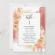 Aidez vos invités à trouver leur table avec cette élégante carte moderne de plan de séjour avec les noms des invités avec la pêche exquise et crème floral et rouille tache d'aquarelle rouge-orange. Cartes recto verso pour que les clients puissent regarder les deux, avant ou arrière pour voir leurs noms dans des affichages suspendus. Libérez de l'espace tout autour en vous donnant la liberté d'utiliser des clips ou un trou de perforation pour accrocher des écrans, ou d'utiliser le support/cadre de table. Cadre aux délicats détails floraux dans un beau mélange de pêche, d'orange, de rose vif, de corail poussiéreux et de champagne crème. Détails de calligraphie manuscrite moderne. Plusieurs options de couleur. Ayez tous les numéros de table dans la même couleur ou mélangez les couleurs selon le thème de couleur de votre événement. Une partie de notre collection "Peach Floral Delight with Rust Orange" avec une variété de produits de coordination disponibles, y compris des cartes de numéro de table et des menus. Visitez la collection entière à l'adresse suivante : https://www.zazzle.com/collections/peach_floral_delight_and_rust_orange-119930026374948611