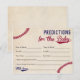 Utilisez nos cartes de prédictions pour bébé sur le thème du baseball vintage pour permettre aux invités de faire leurs prédictions pour le bébé. Il y a des espaces pour deviner le jour de naissance, l'heure de naissance, le poids, la taille, la couleur des cheveux, la couleur des yeux et ce que vous espérez que le bébé obtiendra de maman et papa. Si vous le souhaitez, vous pouvez personnaliser le titre avec le nom du bébé avant d'ajouter les cartes à votre panier. Si vous devez modifier la taille de police, cliquez simplement sur le bouton "Cliquez pour personnaliser davantage" pour modifier.