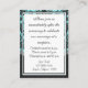 Cartes d'accueil Blue & Black Mariage damassé - Correspond à l'ensemble de la suite trouvée ci-dessous sur cette page. Placez ces cartes avec vos invitations et cartes RSVP correspondantes pour informer vos invités de vos détails de réception. Customisez vos cartes de réception Cliquez sur le bouton orange de personnaliser situé sous la démo de la carte de réception ci-dessus pour modifier la police, la couleur du texte ou la taille à votre convenance. Si vous êtes satisfait du style de police, de la couleur du texte et des tailles, vous pouvez utiliser la fonction personnalisée à droite de la démo pour simplement modifier les informations de démonstration à vos détails personnels de mariage. Assurez-vous de regarder la démo après avoir modifié les détails (la démo change automatiquement après avoir modifié le texte, la taille ou les couleurs de police). La démo vous donnera alors une preuve de votre carte après avoir effectué les changements. Cliquez sur le bouton loupe au-dessus de la démo de la carte de réception pour obtenir une preuve complète. Vous pouvez également cliquer sur chaque image (avant et arrière) pour vérifier chaque côté après avoir effectué les modifications. Un autre conseil est de cliquer sur le bouton design au-dessus de la démo de carte pour zoomer pour voir plus de détails et obtenir un meilleur aperçu des couleurs et de la décoration du design. 5x7 Blue Wedding Invitations Your Prown Photo Custom 5x7 Blue Wedding Invitations Save on Postage—Tiffany Blue & Black Chandelier Mariage damassé Enregistrer la date Cartes postales