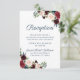 Faites savoir à vos invités les détails de votre réception avec nos cartons d'invitation pour la réception de mariage à fleurs rustiques, bleu marine, marsala et rose. La formulation est entièrement personnalisable - si vous devez changer la police, la couleur de la police, la taille ou l'emplacement des zones de texte, cliquez simplement sur le bouton "Cliquez pour personnaliser davantage" pour modifier ces éléments. N'oubliez pas de consulter notre grande sélection d'articles coordonnés en parcourant la collection de mariage florale rustique bleu marine et rose !