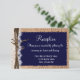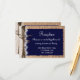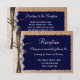 Cette carte de réception de mariage rustique est parfaite pour tout mariage champêtre. Elle présente un fond de toile de jute imprimée rustique avec de la dentelle imprimée et de la ficelle sur le côté. Le lettrage est situé sur un rectangle bleu marine aux bords effilochés. Parfait pour un mariage champêtre ou dans une grange. La toile de jute, la ficelle et la dentelle sont juste des motifs imprimés. Il ne s'agit pas de véritable tissu de toile de jute, de dentelle ou de ficelle.