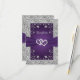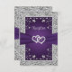 Cette carte romantique violet et gris floral d'enceinte de réception de mariage a l'image d'une paire de coeurs unis au-dessus d'une image de ruban violet courant sur le centre de la carte. L'arrière est munie d'un arrière - plan violet avec les détails de votre réception ou d'autres informations imprimées en gris clair avec un cadre de défilement argenté simulé entourant le libellé. Il y a une bordure en argent simulée autour de la carte entière sur l'avant et l'arrière. Si vous avez besoin d'autres articles correspondants, envoyez votre demande par courriel à niteowlstudio@gmail.com ou utilisez la fonction conversation Zazzle pour entrer en contact.