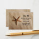 Plage de sable avec une carte de mariage d'étoiles de mer.