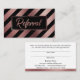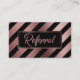 Ce design riche et éclatant présente une feuille d'or faux rose frappante et un motif noir audacieux à rayures diagonales sur le devant. Le centre est masqué par un rectangle noir avec des bordures en or double rose, ce qui améliore le design sophistiqué. Au centre de l'insigne, en utilisant une jolie police de script moderne, est une superposition graphique typographique qui dit "Referral". Cette couche de texte graphique a été embellie avec le même effet or rose que j'ai utilisé dans les bandes et bordures. Au verso, j'ai mis en place tous les champs de modèle que vous aurez besoin d'offrir les détails et les termes à vos clients. Utilisez les champs modèles pour ajouter vos propres détails et apporter les modifications de libellé nécessaires. Vous pouvez également cliquer pour customiser plus loin si vous souhaitez modifier les polices, les tailles ou les positions de n'importe quel élément. // Idéal pour les propriétaires de salon, les coiffeurs, les esthéticiennes, les manicuristes et les techniciens de l'ongle, les maquilleurs, les massothérapeutes, les entraîneurs personnels, et beaucoup d'autres dans les secteurs de la guérison et des services personnels qui apprécient honorer les aiguilles d'affaires. // N'hésitez pas à contacter si vous avez des demandes spéciales ou avez besoin d'aide customisée. // Conçu par Melody Watson pour Paper Muserie.