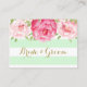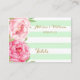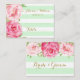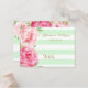 table mariage placer les cartes de réglage dans les rayures vert menthe pastel clair et blanc avec l'aquarelle rose fleurs vintages, également disponible dans de nombreux produits mariages assortis.