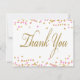 Cartes de remerciement rose et or avec confettis rose et or et écriture élégante de remerciement en or. Vous pouvez facilement personnaliser ces cartes de remerciement plates rose et or en ajoutant simplement votre message dans le style de police et la formulation de votre choix. Vous pouvez également changer la couleur de fond. Il s'agit d'un design imprimé sans véritable paillettes, confettis, etc.