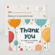 Carte de remerciement d'anniversaire avec ballons colorés et confettis. Une façon cool de dire merci pour vos cadeaux.