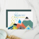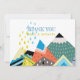 Élément moderne et original de style d'art folklorique scandinave pour bébé avec des nuances vibrantes de bleu pâle, jaune et orange. De nombreuses lignes angulaires caractérisent cette forme d'art populaire et tendance. Avec les montagnes enneigées, cet élément est parfait pour votre baby shower d'hiver.