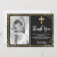 Cartes de remerciement élégantes et simples en or et noir pour baptême. Envoyez vos remerciements à votre famille et à vos amis avec cette carte de remerciement personnalisée moderne et religieuse. Elle présente un lettrage manuscrit "Merci" entouré d'un double cadre en faux or et de confettis pailletés or sur fond noir. Cette belle carte de remerciement photo moderne sera également parfaite pour les cartes de remerciement pour garçon ou fille à l'occasion d'un baptême, d'une christophanie, d'une cérémonie de nomination, d'une confirmation ou d'une communion solennelle. #3354
