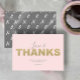 Exprimez votre gratitude avec ces cartes de la Saint-Valentin ou cartes de remerciement qui allient design simple, élégant et moderne. Avec "Amour et Remerciements" écrit dans un script manuscrit tendance et une typographie dorée en relief sur un fond rose doux, ces cartes sont parfaites pour les mariages, les célébrations de la Saint-Valentin ou toute autre occasion. Le dos présente un motif chic de X et de O, ajoutant une touche minimaliste et élégante. Coordonez-les avec la gamme complète de papeterie assortie sur www.zazzle.com/dotellabelle.