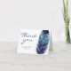 Cartes de remerciement de mariage à plumes bleues avec texte bleu personnalisable imprimé sur fond blanc