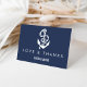 La conception de la carte de remerciement nautique comporte une illustration de corde et d'ancre sur un fond bleu marine classique, avec "amour et remerciements" en lettrage blanc. Personnalisez avec votre/vos nom(s) en dessous.