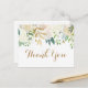 Envoyez nos cartes postales de remerciement avec feuille d'or et fleurs blanches pour faire savoir à vos invités combien vous les appréciez. La formulation est entièrement personnalisable - si vous devez changer la police, la couleur de la police, la taille ou l'emplacement des zones de texte, cliquez simplement sur le bouton "Cliquez pour personnaliser davantage" pour modifier ces éléments. Vous pouvez facilement supprimer le message de remerciement avant d'ajouter le produit à votre panier si vous préférez écrire une note manuscrite. Assurez-vous de consulter notre grande sélection d'articles coordonnés en parcourant la collection de mariage florale or et blanc !