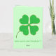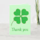 Peinture d'un trèfle vert, trèfle à quatre feuilles, bordé de points dorés, avec des espaces réservés pour votre texte, imprimé sur des cartes de remerciement de mariage. Personnalisez facilement le texte sur les formulaires de modèle.