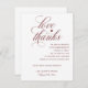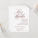 Affichez ces jolies cartes plates sur les tables de votre réception de mariage pour remercier vos invités d'être là pour célébrer avec vous ! Ce design présente une calligraphie royale en bourgogne / rouge foncé. Besoin d'une couleur différente ? Vous pouvez la changer simplement en changeant la couleur de fond ! **COMMENT CHOISIR VOTRE PROPRE COULEUR : 1) Cliquez sur le lien/bouton "Personnaliser davantage". 2) Choisissez une nouvelle couleur de fond pour changer la couleur du design.