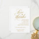Affichez ces jolies cartes plates sur les tables de votre réception de mariage pour remercier vos invités d'être là pour célébrer avec vous ! Ce design présente une calligraphie royale en or. Besoin d'une couleur différente ? Vous pouvez la changer simplement en changeant la couleur de fond ! **COMMENT CHOISIR VOTRE PROPRE COULEUR : 1) Cliquez sur le lien/bouton "Personnaliser plus". 2) Choisissez une nouvelle couleur de fond pour changer la couleur du design.