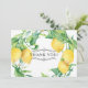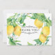 REMERCIEMENTS AVEC UN ENSEMBLE COMPLET DE PRODUITS. Format plat de 5x7 pouces, disposition horizontale pour un design moderne et un coût réduit, surtout si vous les commandez en même temps que vos invitations, car ils seront pris en compte pour votre remise sur quantité. Cette Couronne de citron avec fleurs et fruits, Suite d'invitation de mariage Floral Citrus a été créée à partir d'une œuvre d'art originale peinte à la main, à l'aquarelle par Audrey Jeanne Roberts. Le verso présente un motif à larges rayures peintes à la main de couleur jaune citron pâle. Joli. Frais. Tendance et pourtant intemporel. Œuvre d'art copyright Audrey Jeanne Roberts, tous droits réservés.