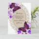 Ces magnifiques cartes de remerciement de mariage en dentelle blanche présentent des papillons et des fleurs violettes et des roses crème rose. Parfait pour un mariage champêtre rustique ou pour une célébration de mariage DIY. Très élégant.