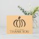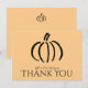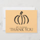 Ces cartes de remerciement sur le thème de l'automne (plates, non pliées) sont parfaites pour les événements d'automne, qu'il s'agisse d'Halloween, de Thanksgiving ou de mariages. Elles présentent un dessin minimaliste moderne d'une citrouille sur un fond orange chaud mais subtil (couleur hexadécimale ffcd8c). Pour ajouter ou supprimer des lignes de texte, utilisez la fonction de personnalisation. Personnalisez avec votre nom.