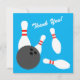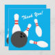 Cartes de remerciement pour anniversaire de bowling carré. Design amusant pour célébration à la piste de bowling.
