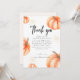 Cartes de remerciement pour Baby Shower Modernes Orange Citrouille, avec le mot "Merci" aquarelle citrouille orange doré automne Halloween jeux de baby shower. Typographie calligraphique minimaliste moderne.