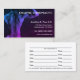 Ce carte de visite personnalisable de chiropractie comporte un homme avec le dessin d'épine superposé au sien de retour, à un arrière - plan modifié la tonalité bleu et pourpre.