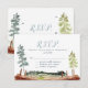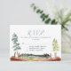 Cartes de l'aventure attend. Cette carte de réponse de style country est conçue avec des arbres verts de style aquarelle et un paysage de style country. La décoration de mariage coordonnée est disponible sur Metro-Event.com et Metro-Events sur Zazzle.