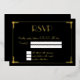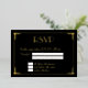 Cartes de réponse de mariage Art Déco Great Gatsby en noir et véritable feuille d'or avec texte modifiable