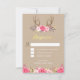 Cartes de réponse de mariage au pivoine rustique et bois de cerf - présente un fond en papier kraft de campagne imprimé avec des bois de cerf, des pivoines roses et des feuilles imprimées en faux or et une écriture assortie. La carte de réponse de mariage au bois de cerf peut être entièrement personnalisée en utilisant le bouton "personnaliser" si vous avez besoin de plus d'options pour les polices, la couleur et plus encore. Vous pouvez mettre à niveau le papier ou la forme des cartes de réponse ci-dessus.