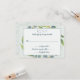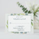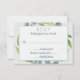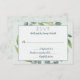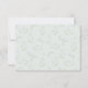 Cartes de réponse avec feuilles d'eucalyptus pour un mariage. La carte de 8,9 x 12,7 cm est de couleur bleu-vert pâle avec un grand fond de couronne et un aspect stratifié. Un panneau blanc cassé contient les modèles de texte en bleu foncé avec RSVP en haut. Personnalisez avec la date de demande de réponse et votre choix de mode de réponse. Un site web de mariage peut être ajouté, ou le texte traditionnel "sera là" "ne participera pas". Incluez un espace pour le nombre d'invités si vous le souhaitez. Le dos de la carte comporte un motif léger de feuilles. Mettez à niveau vers un papier spécial pour assortir les invitations comme vous le souhaitez.