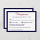 Personnalisez cette réponse avec vos informations de mariage. Ces réponses sont parfaites pour les mariages nautiques, océaniques, côtiers, en bord de mer, à la plage et de destination. Le design a une bordure élégante bleu marine avec un motif de drapeau maritime. Chaque drapeau a une signification. Le drapeau central signifie "Je souhaite communiquer avec vous". Le drapeau gauche signifie "Affirmatif". Le drapeau droit signifie "Négatif".