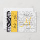 Cartes de réponse pour invitations de mariage avec Damask et monogramme jaune et écriture. Style horizontal.com et WhiteWhimsicalWeddings.blogspot.com. Personnalisez avec votre monogramme, vos noms et vos informations de réponse. Choisissez également parmi une variété de polices et de papiers magnifiques pour rendre vos cartes de réponse d'invitation de mariage FABULEUSES ! Conception d'Elke Clarke ©2011. Graphiques sous licence pour une utilisation commerciale