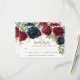 Cartes de réponse de mariage en Bourgogne rustique et bleu marine - avec des roses et des pivoines élégantes aquarellées dans diverses nuances de Marsala, de bourgogne, de merlot et de bleu marine avec une verdure élégante. Il y a des touches de brindilles dorées dans les fleurs et la verdure. La mise en page de la police affiche des couleurs d'encre dorée et bronze imprimées pour une décoration supplémentaire. Consultez la collection correspondante sur cette page pour voir tous les produits correspondants.