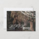 Cartes de réponse de mariage avec un chêne sudiste, guirlandes lumineuses, mousse espagnole suspendue et une barrière blanche sous le chêne. Ces cartes de réponse sont parfaites pour un mariage campagnard sudiste. Voici les invitations assorties :