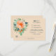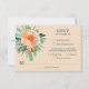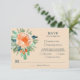 Aquarelle élégante de fleurs aux tons pêche à orange bordées de feuillage sarcelle à vert jade avec réponse et choix de menu en lettrage sarcelle chic. Changez le fond pêche en n'importe quelle couleur pour correspondre à votre thème de mariage. ARTICLES CORRESPONDANTS dans notre magasin.