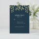 Cartes de réponse élégantes pour aller avec notre collection de mariage feuilles dorées sur fond marine avec une ligne supplémentaire pour les exigences alimentaires. Articles assortis disponibles dans cette collection.