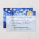 La carte de réponse d'invitation de mariage rend hommage au tableau de Van Gogh "La nuit étoilée". Elle présente des couleurs plus vives et intègre des paillettes dans son image finale pour une soirée scintillante. Personnalisez ces cartes de réponse d'invitation de mariage avec tous vos détails personnels pour des invitations à thème de mariage artistique.