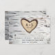 Cartes de réponse de mariage rustique avec écorce de bouleau - présente un fond d'écorce de bouleau blanc avec des nuances de brun, gris, noir et d'autres couleurs neutres. Le design présente également un cœur sculpté réaliste sur l'écorce de bouleau dans lequel vous pouvez "graver" vos initiales et la date de l'événement et des polices de caractères typographiques modernes, pour un effet supplémentaire, sont utilisées pour le reste du texte de l'invitation. Ce produit apportera un élément intemporel à votre événement pendant des années et s'accorde avec tout type de thème de mariage, de couleur ou de saison -- des mariages vintage, automne ou hiver, ou les thèmes rustiques toujours populaires. Consultez la collection assortie sur cette page pour trouver des produits coordonnés qui répondent à vos besoins événementiels.