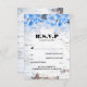 cartes de réponse de mariage florales bleues rustiques et campagnardes avec texture d'écorce de bouleau sur les deux côtés