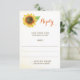 Ces cartes de réponse mariages ont un design de tournesol aquarelle. Vous pouvez modifier la couleur et le style du texte en cliquant sur le bouton "Personnaliser". Ces cartes de réponse mariages font partie de la collection Mariage Sunflower Watercolor qui comprend une gamme complète de papeterie mariage correspondante, comme les invitations de mariage, les cartes d'information, les étiquettes de adresse, les autocollants, les timbres-poste, les enveloppes, les ballotins, les cartes de souhaits, les programmes, les menus, les cadeaux de mariée et bien plus encore. Visitez la page de collection de notre magasin pour voir la gamme complète de produits que vous pouvez personnaliser pour votre mariage.