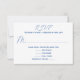 Cartes de réponse du mariage blanc avec texte bleu. Des polices imprimées bleu moyen et jolies sont utilisées en modèle où une sélection menu / entrée peut être ajoutée pour les clients. Ou, utilisez un simple "assistera" et "n'assistera pas" au besoin. La carte n'a pas de design, seulement du libellé. L'inverse est bleu uni assorti. Cette carte est également offerte en téléchargement instantané.