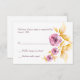 Une carte de réponse coordonnée avec trois fines fleurs aquarelles dans les tons prune et rose avec des feuilles dorés. La carte est facile à customiser avec votre libellé, police, couleur de police, options de forme de papier et choix de six types de papier. Pas exactement ce que vous cherchez ? Tous nos produits peuvent être conçus sur mesure pour répondre à vos besoins sans frais supplémentaires. Contactez-nous simplement à askcottonlamb@gmail.com Coordonner les produits disponibles : Plumrose Watercolor Invitations Plumrose Postage Timbre Plumrose Étiquette de adresse Plumrose Merci Cartes Plumrose Stickers Plumrose Numéros de table