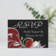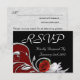 Carte de réponse rouge, noir et argent avec sélections de menu.