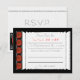 Cette carte de réponse de mariage de 4,25"x5,5" présente un design original élancé et net avec des rayures fines grises sur fond blanc et des séparateurs noirs printaniers évoquant une colonne architecturale, surmonté d'une bordure inspirée de Rennie MacIntosh avec des roses rouges sur fond noir et des ornements de style artisan blanc. Tout le texte est personnalisable. #zazzlemade