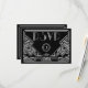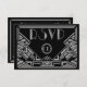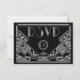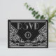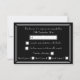Une carte de réponse RSVP de mariage élégante et audacieuse, de style vintage, avec un thème "Gatsby le Magnifique" des années folles en noir et gris argenté. Un fond noir met en valeur la bordure géométrique complexe de style Art Déco en tons gris. Des polices décoratives de style d'époque ont été sélectionnées pour compléter l'apparence.