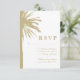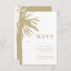 Cartes de réponse RSVP pour mariage exceptionnel à la plage. Donnez à vos invités un moyen de répondre s'ils viennent à votre élégant mariage de plage. Cette conception va de pair avec des invitations de mariage similaires. Qualité du texte et du papier personnalisable. Thème tropical pour le mariage d'été ou de destination. Sable beige couleur palmier silhouette design. La palette de couleurs peut être modifiée. disposition verticale.