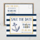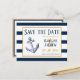 Invitez vos amis et votre famille à partager avec vous le plus beau jour de votre vie avec ces cartes de réservation de mariage classiques avec des rayures nautiques et une ancre. Le design présente des rayures nautiques modernes bleu marine et blanches avec des accents dorés. Personnalisez les noms, les dates et plus encore grâce aux modèles faciles à utiliser. Trouvez des produits assortis dans ma collection de mariage à rayures nautiques ci-dessous.